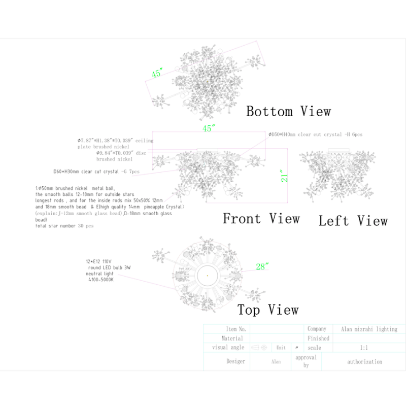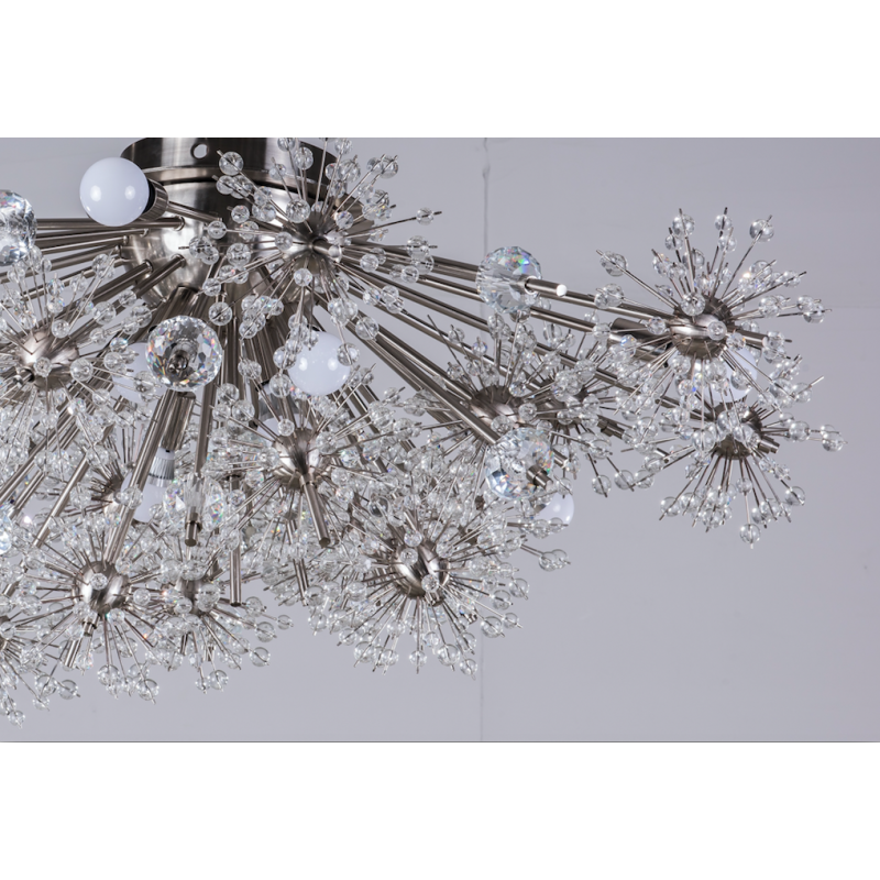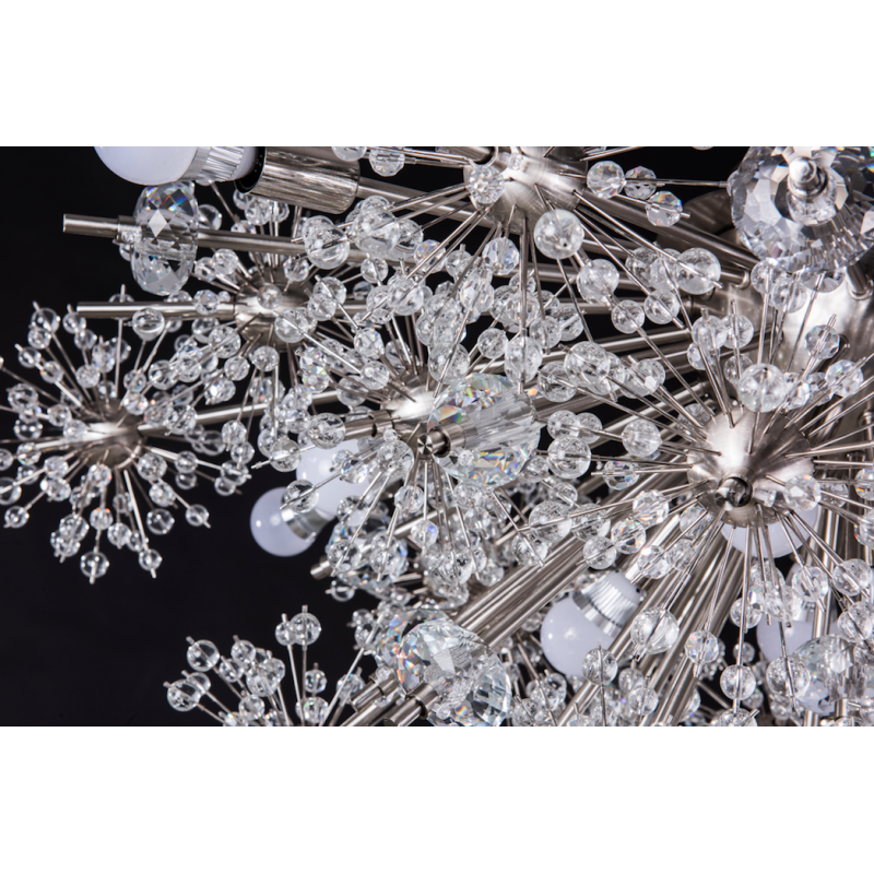 Be the life of the party ALL the time with this extremely elegant, yet modern Crystal Esprit Sputnik lighting fixture that glows with sophistication and pristine style. In addition to its extensively detailed design, there is also a huge celestial and space-oriented inspiration for this piece. The inspiration for it came from Wallace K. Harrison, the architect of the Metropolitan Opera House, when he gave the designers of the original Sputnik, pictures of the galaxy. The original Sputniks are one of the most recognizable features of the opera house, and it's said that you can even see them through the windows from the outside!  At Alan Mizrahi Lighting Design, we supply and manufacturer many highly sought after designer pieces, All Chandelier can be customized by a number of lights, style, color and size to meet your specific needs. Every chandelier can also be combined with a matching table lamp and wall lamp to accomplish the best room design. Our company provides collections that can make all your project dreams come true. Lighting products play an important role in any room setting. Hence, you need to make sure that the items you choose should brighten the room while rendering it a relaxing and welcoming feel as well.